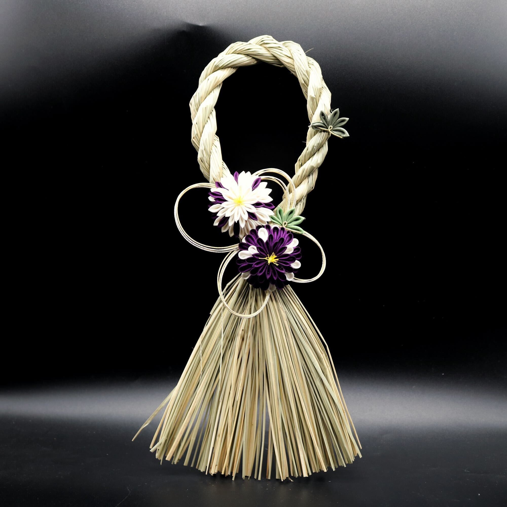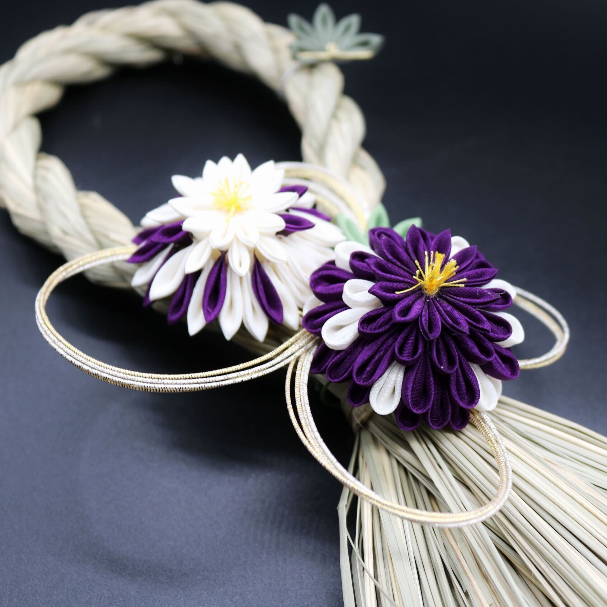 日本の伝統工芸であるつまみ細工の美しさと繁栄や幸運を象徴するしめ縄。