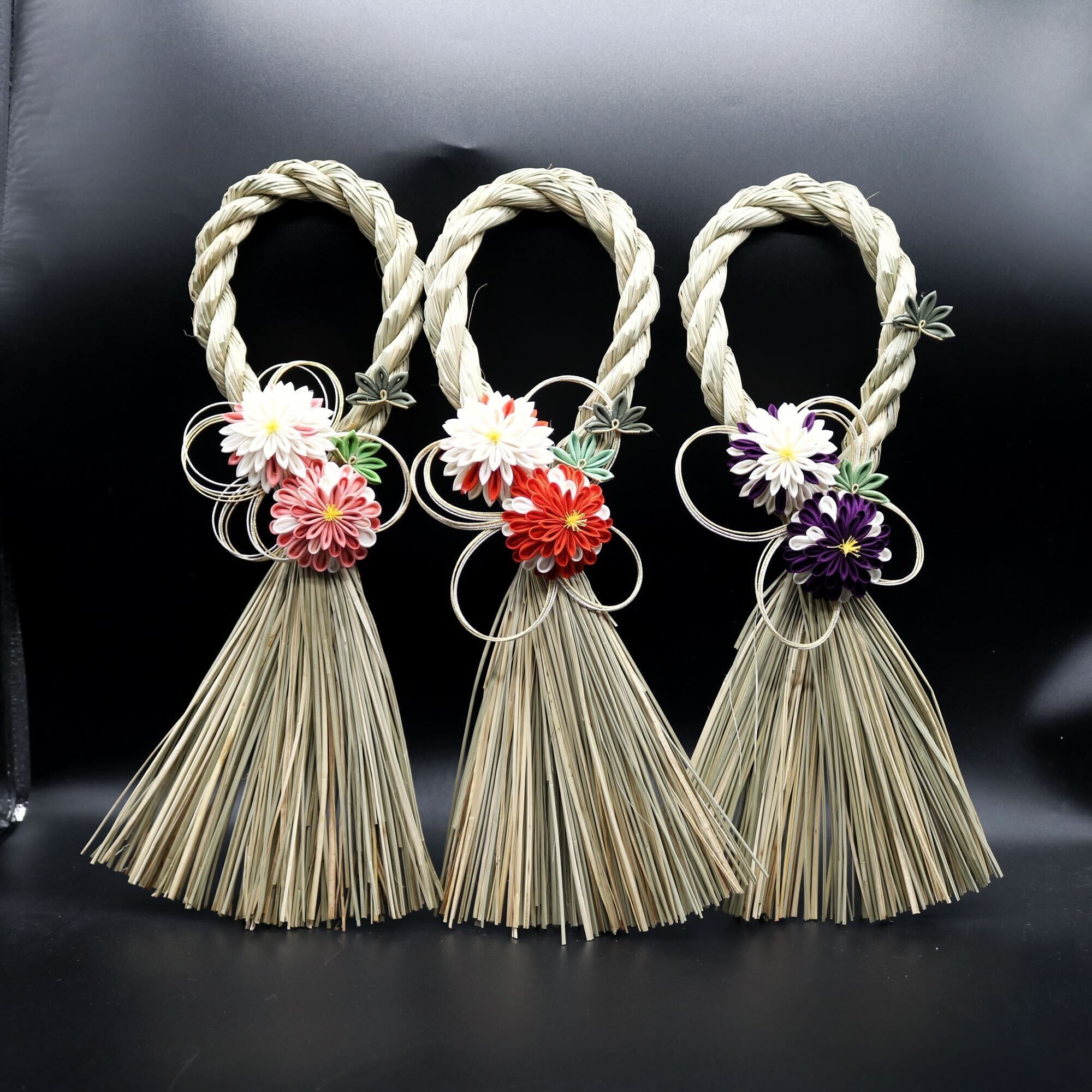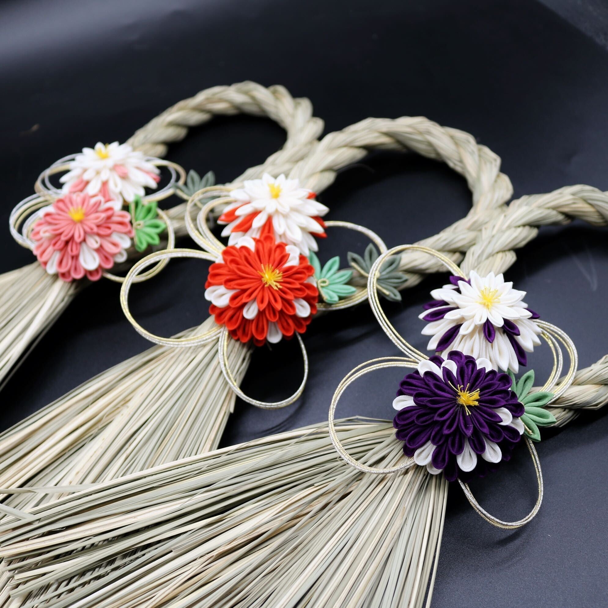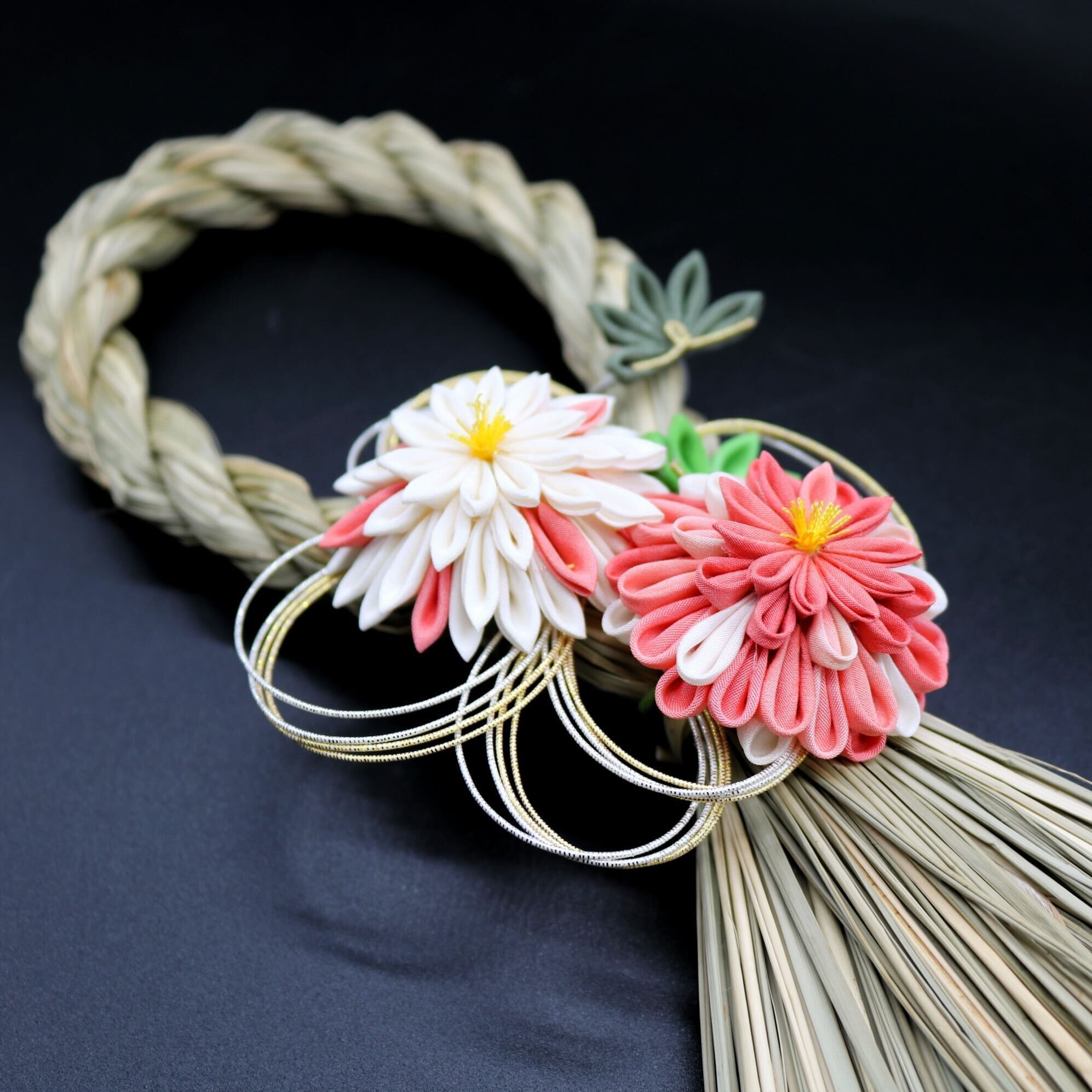 日本の伝統工芸であるつまみ細工の美しさと繁栄や幸運を象徴するしめ縄。
